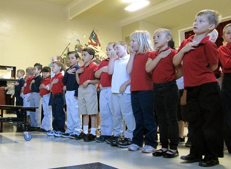 True enough. On this day, neat rows of students wearing their red, white and blue uniforms belted out "God bless the USA" in the school cafeteria.