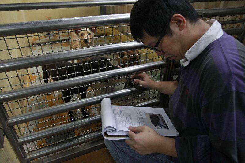 The dogs come in all sizes and shapes. Some are young and active, others grizzled, listless and battered. After Tou photographs them, veterinary workers take them for a brief turn around a grassy courtyard before leading them into a small, clinical-looking room where they are killed by lethal injection.
