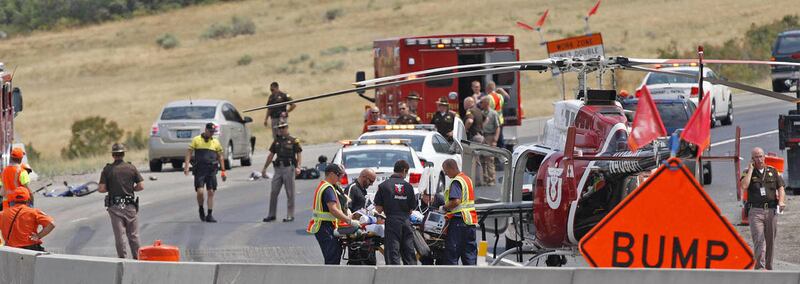 The woman, whose name was not released, was riding with her husband and children in a vehicle pulling a trailer, when their vehicle hit a bump and one of their bicycles was knocked loose and fell onto the road, said Utah Highway Patrol Cpl. Todd Johnson.