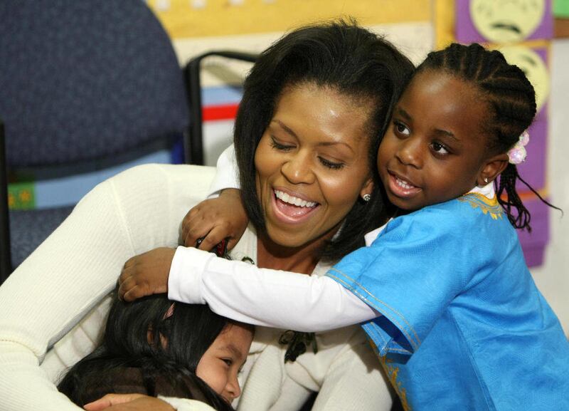 She is 5-foot-11 and world famous. Sometimes she inspires awe in her admirers. She has been accused of being the angry type. So when Michelle Obama meets people, she likes to bring things down to earth with a hug.