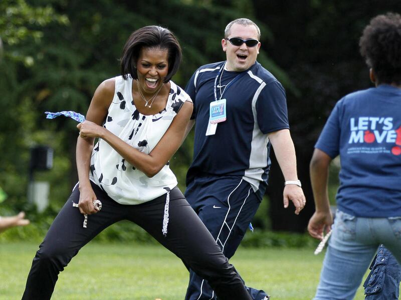 Beyonce's video had just hit the Internet, and students had spent a few gym classes practicing the choreography. All the students were outside on the playground when Mrs. Obama arrived, wearing black slacks and a bright yellow blouse that showed off those arms.