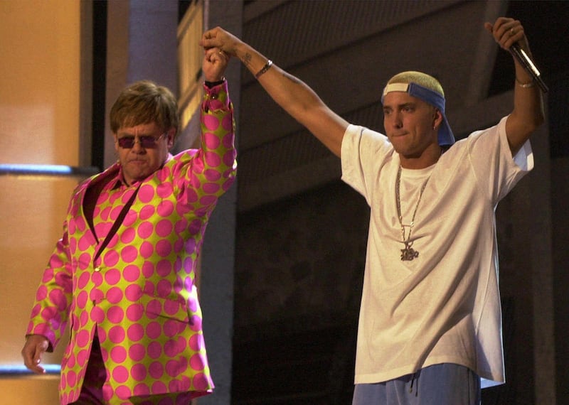 But some of hip-hop's key figures have given some kind of support to the gay community. Pharrell recently collaborated with the openly gay pop singer Mika on the song "Celebrate." Jay-Z, like Eminem, has said people of the same sex should be able to love one another. Eminem performed with Elton John at the 2001 Grammy Awards at the height of GLAAD's criticism.