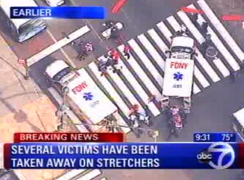 "We were just working here and we just heard bang, bang, bang!" said Mohammed Bachchu, 22, of Queens, a worker at a nearby souvenir shop. He said he rushed from the building and saw seven people lying on the ground, covered in blood.