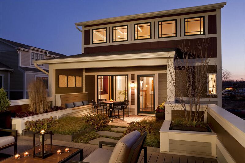 The original plan for the project was to build 31 million-dollar townhouses and convert the old school on the block into a dozen loft-style condominiums. Because that plan didn't work, McLinden decided to try something different. He acquired the development and kept the 26 remaining planned home sites at their original 29-foot widths, but decided to make single-family homes with large front porches instead of townhomes. Building homes so close together on such narrow lots was unheard of in the suburbs. And so was building small.