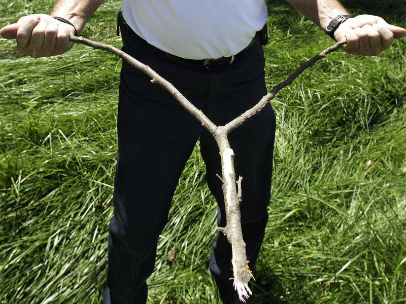 Gebke is water witching, using an ancient method with a greater connection to superstition than science.