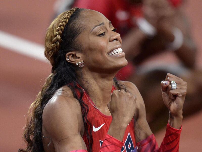 She surged to the finish, won by about a body's length and punched her fist when she crossed the line in 49.55 seconds Sunday night to give the U.S. its first track and field gold medal of the London Olympics.