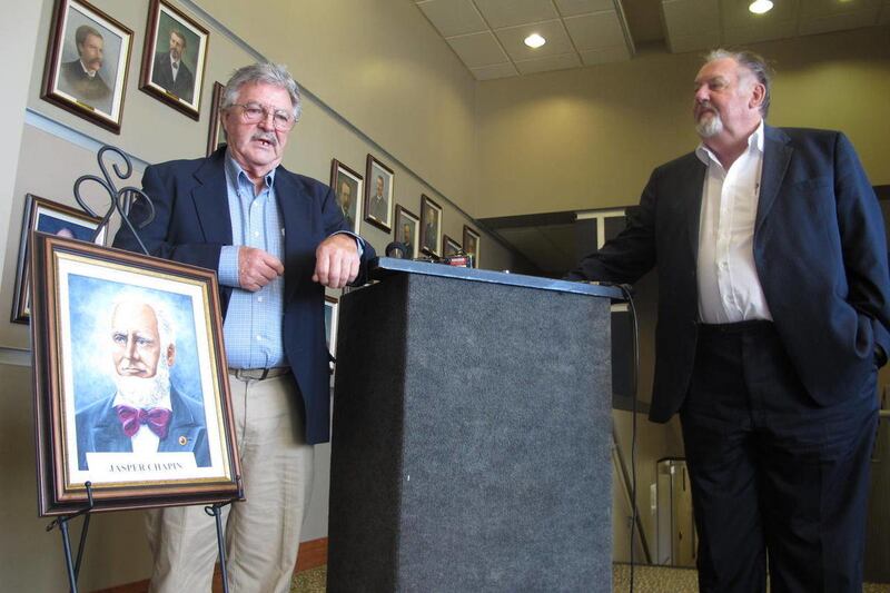 "He was kind of a rascal," artist Burdette Calkins said, looking at his oil painting of Chapin sporting a white beard and bushy eyebrows, a la Santa Claus. "I spruced him up a bit."