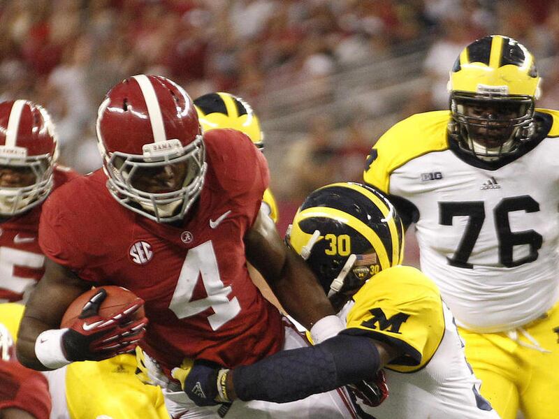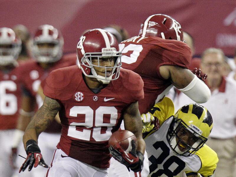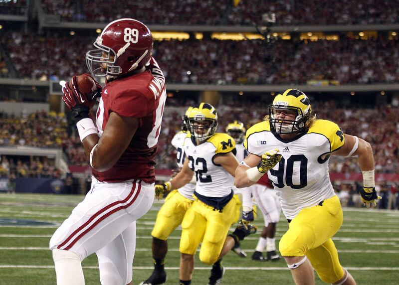 ARLINGTON, Texas — AJ McCarron threw two touchdown passes and Alabama's retooled defense showed it could still dominate as the second-ranked Crimson Tide pounded No. 8 Michigan 41-14 on Saturday night.