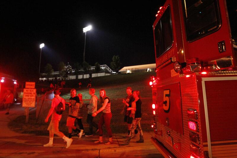 The football game between Jordan and East High was stopped in the third quarter. An electrical box was damaged, but no other damage was caused to the building.