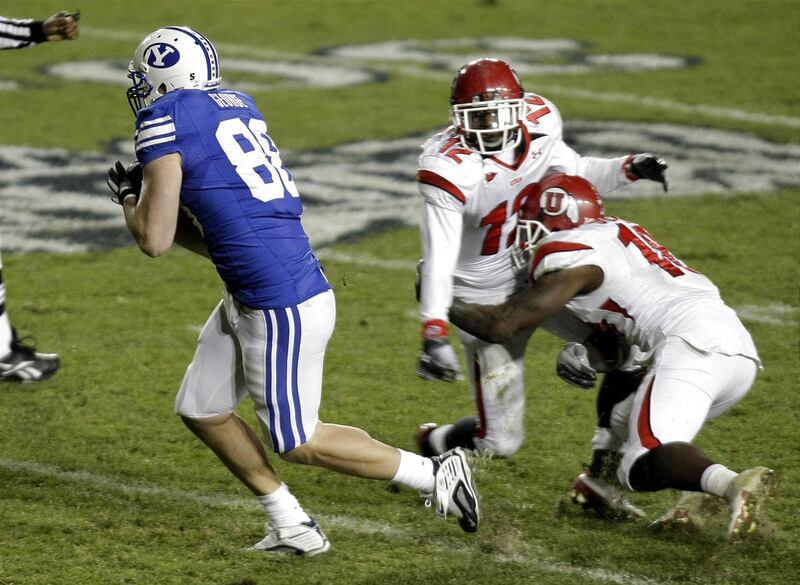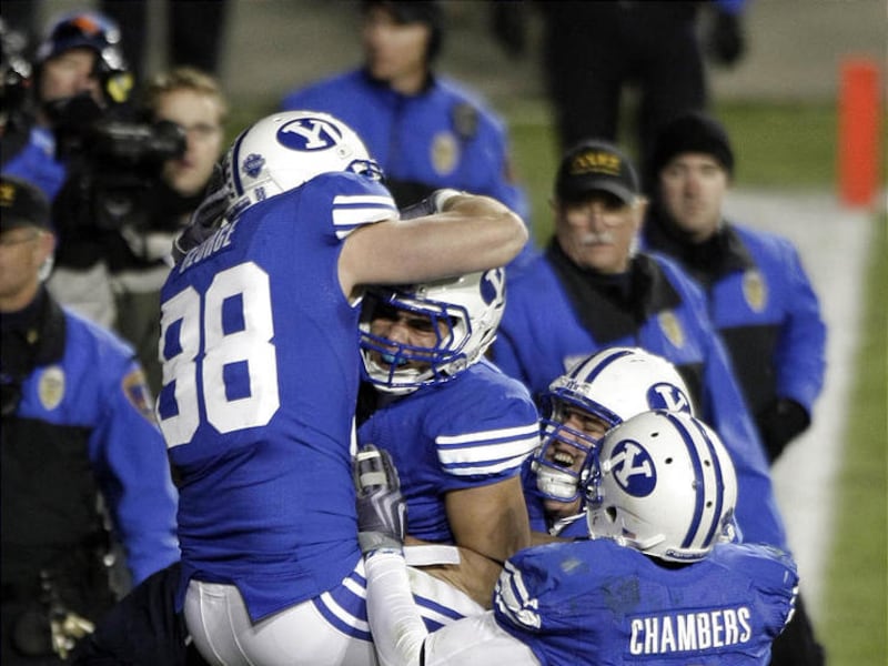 After scoring, the senior tight end found himself at the bottom of a pile, being mobbed by teammates and fans reveling in the Cougars' dramatic 26-23 victory at LaVell Edwards Stadium.