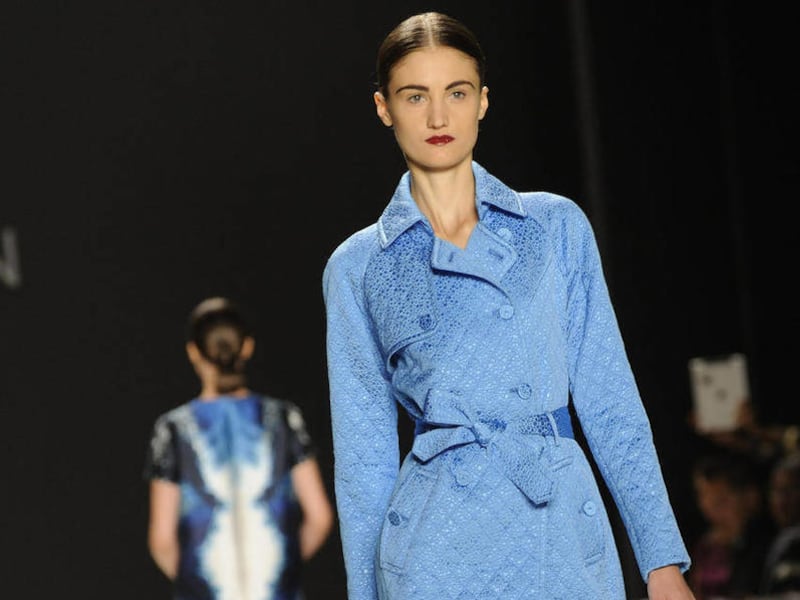 The crowd at Lincoln Center also seemed to like his blue multi-wave print, which looked a little like an Impressionist painting; he presented it in a sheath dress, a shift and, most successfully, in a strapless cocktail dress.