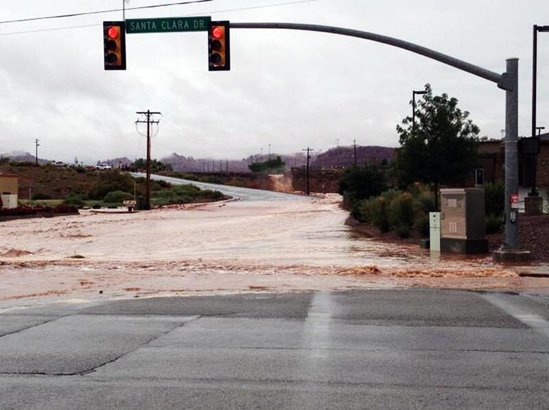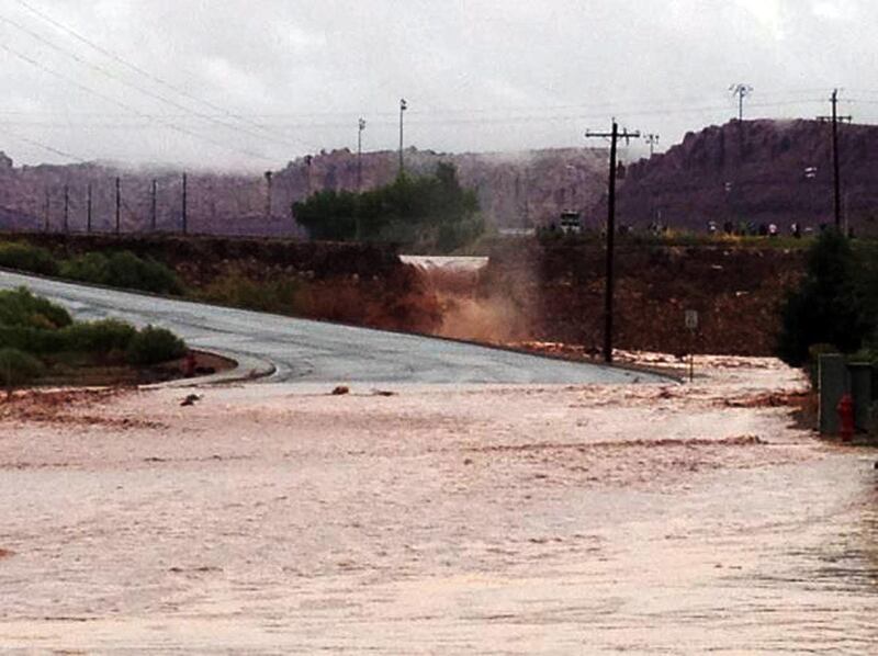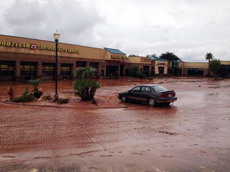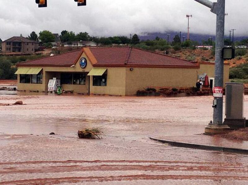 The National Weather Service issued a flash flood warning for parts of Washington and Wayne counties at 1:45 p.m. A flash food watch was in effect for much of southern Utah through 11 p.m.