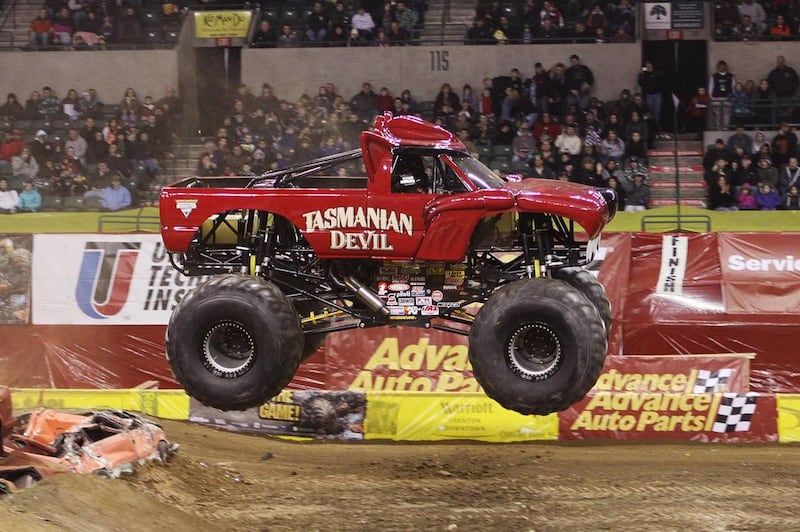LAS VEGAS — When Nicole Jardin Johnson, mother of two boys, takes a drive, it's not a minivan she's climbing into, but a 10,000-pound, 1,475-horsepower, 12-foot tall, red Herculean monster truck dubbed "Tasmanian Devil."