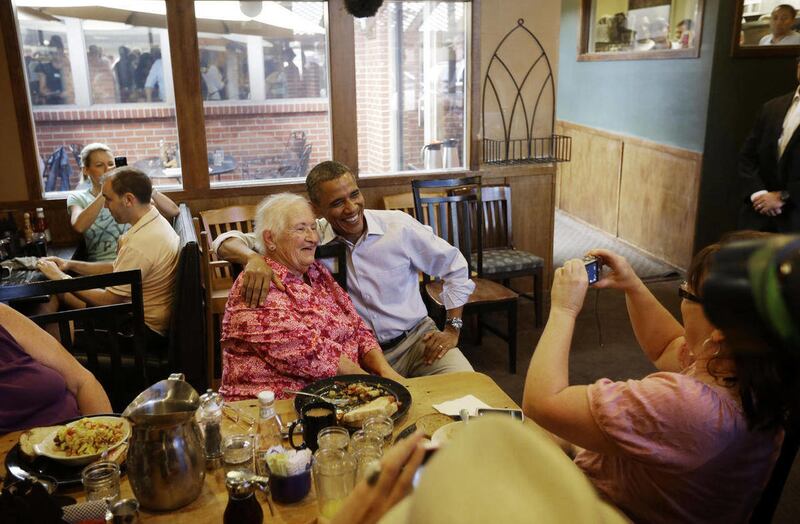Obama was en route to a campaign speech in Boulder, home of University of Colorado buffaloes, when he interrupted dozens of customers having eggs and coffee.