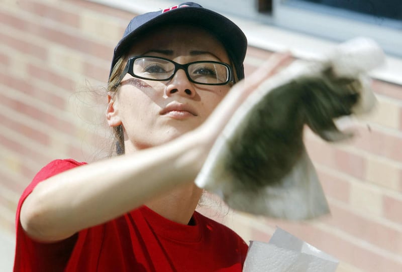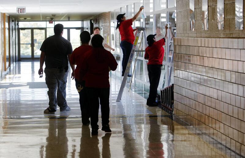 The short-staffed custodial group was in need of help as the 400 windows outside the school had not been cleaned in years.