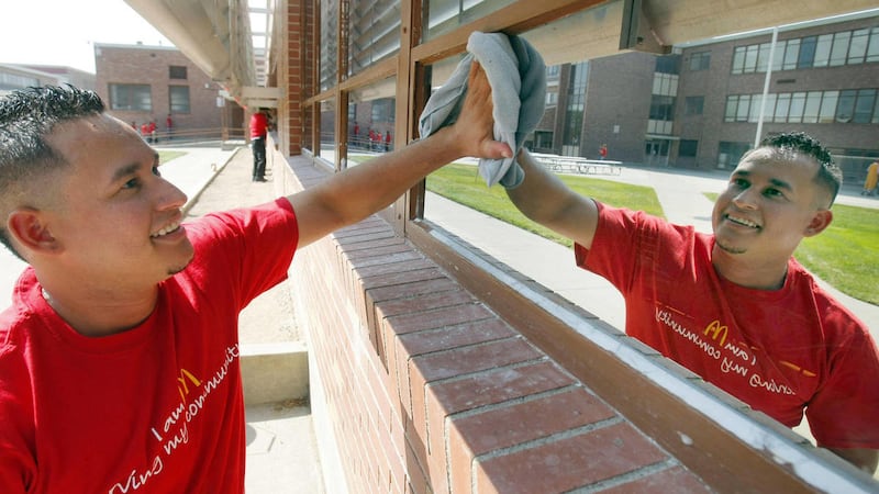The McDonald's employees tackled several tasks for the school as part of National People Week. About 400 McDonald's employees volunteered in local schools in a combined 24 projects statewide.