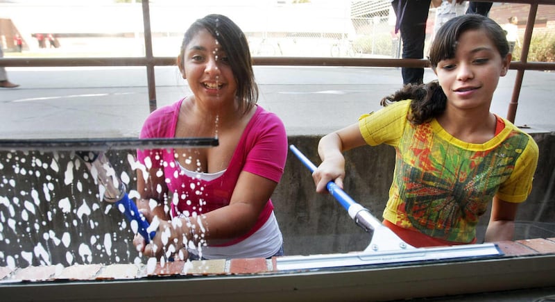 Franco Gonzales, 12, a seventh grader at the school, was joined by friends who made a day out of the service project. For them, helping their school was more important than spending the day at home.