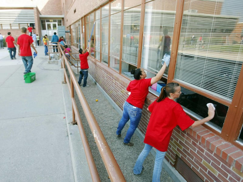 "We are able to do the insides every year, the outsides have been three to four (years)," said associate custodian Greg Kiethly. "Kearns is really windy and dusty so they get dirty really quick."