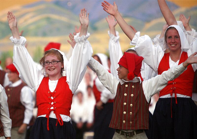 BRIGHAM CITY — More than 3,700 youths in costume filled the entire field at the Box Elder High School football stadium as they joined in song and dance to celebrate the "Harvest of Faith" they represent from the early generations who settled in northern Utah and southern Idaho.