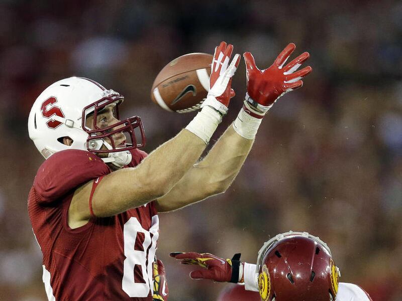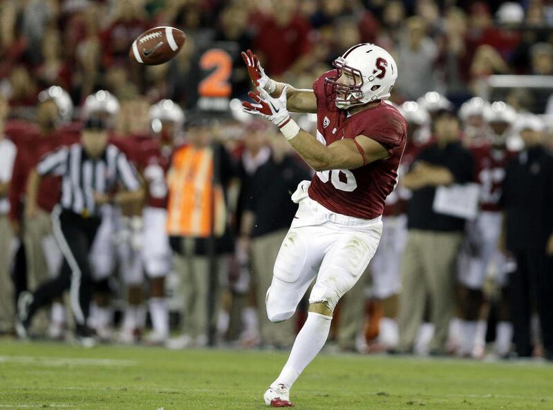 "The only tight end I've been around that can run that route is Todd Heap," said Stanford coach David Shaw, referring to the Baltimore Ravens' first-round pick in 2001, now with the Arizona Cardinals. "Just as far as him being able to have that body control, the quickness and the agility. That route is usually for a 6-foot, 180-pound receiver that can make that triple move."