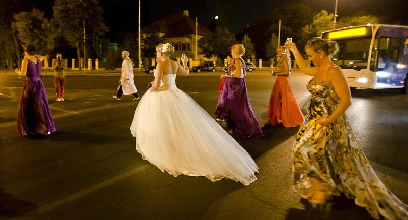 Every Saturday night, brides from Bucharest and beyond are dragged away in a mock abduction by friends and driven to a top tourist spot where they are "held hostage" — all the while pouting, dancing and striking provocative poses for the cameras.