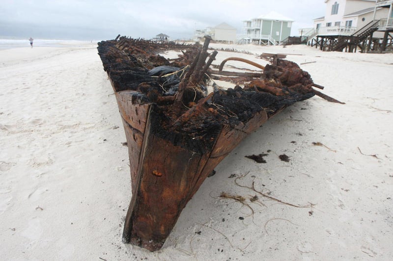 GULF SHORES, Ala. — The pounding surf and currents from Hurricane Isaac on a remote spit of Alabama shoreline has again revealed the wreckage of a schooner that ran aground in 1923, delighting curious tourists and locals.