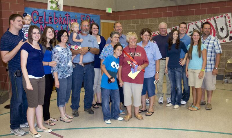 RIVERTON — When family, friends and Riverton Elementary students welcomed Linda Warwood to a surprise assembly in her honor Friday, her first reaction was the same as it's been for the past 50 years: to make sure her class was taken care of.