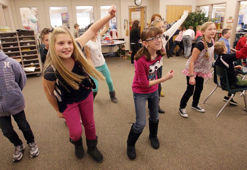 Some days, Robin Farnsworth will set up stations with Legos, board games, art and cup stacking for her third-grade class at Woodrow Wilson Elementary in Salt Lake City. Other days, Farnsworth will move desks to the edge of the room and project an iPad dance application called CFIT.