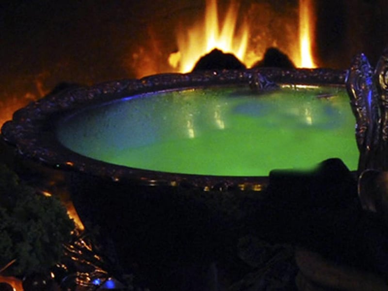 Fit a colored punchbowl or cauldron with a clear plastic bowl for a liner (check discount or party stores). Place several activated glowsticks in the punchbowl and set the liner on top. Fill the liner with your favorite punch or juice, adding a few drops of green food coloring if you wish. Wearing gloves, float chunks of dry ice for a bubbling, steaming effect.