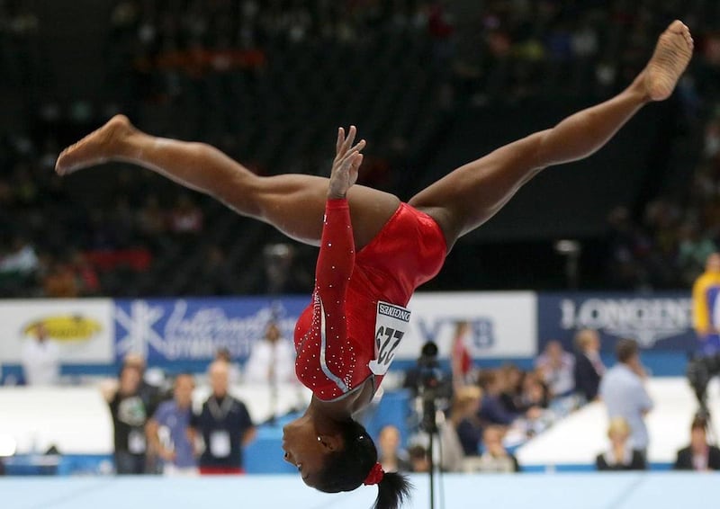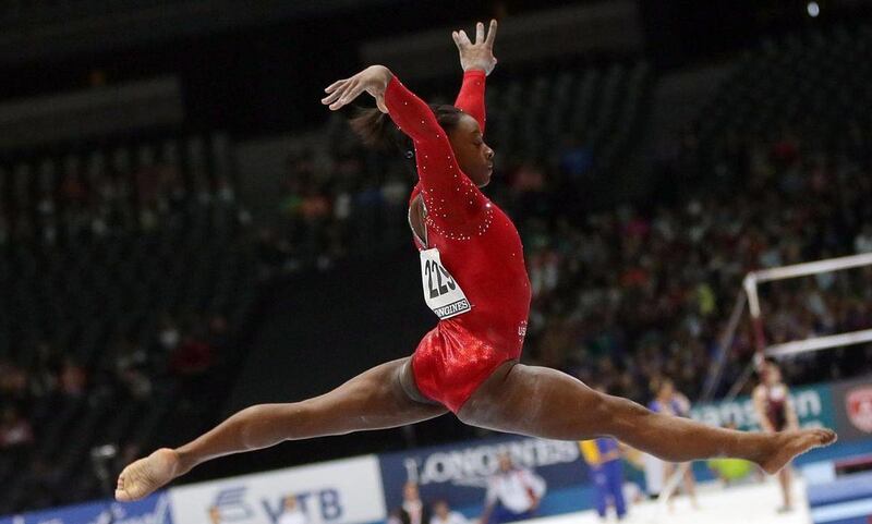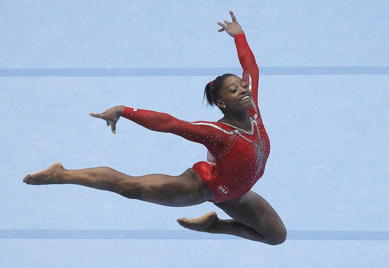 Biles was outstanding on the floor too, letting her muscles do the work on leaps and tumbles while her personality took over on the dance elements.