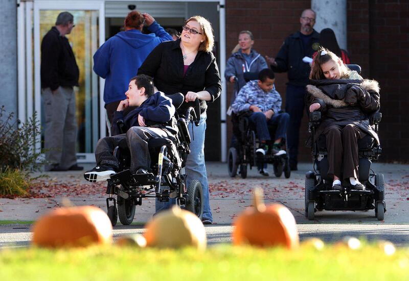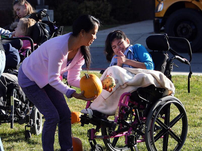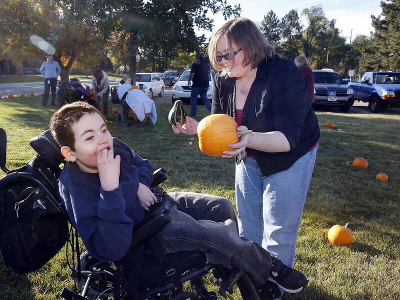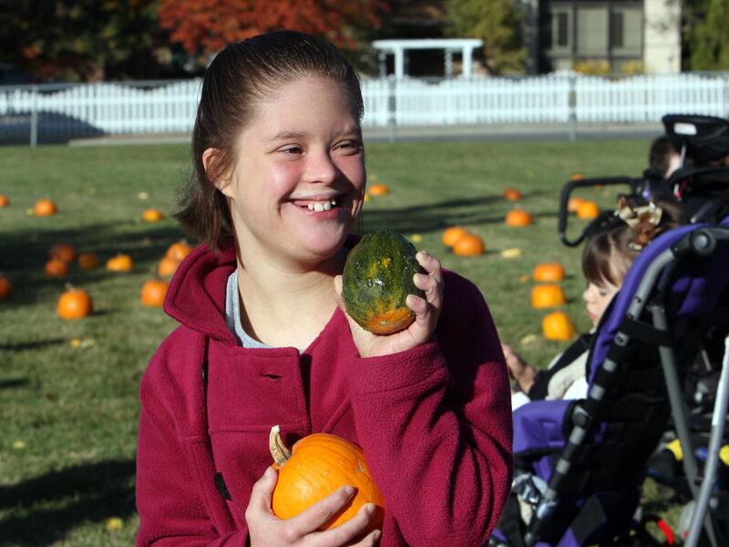 One boy was hesitant at first but let a smile spread across his face after an aide coaxed him into picking a pumpkin.