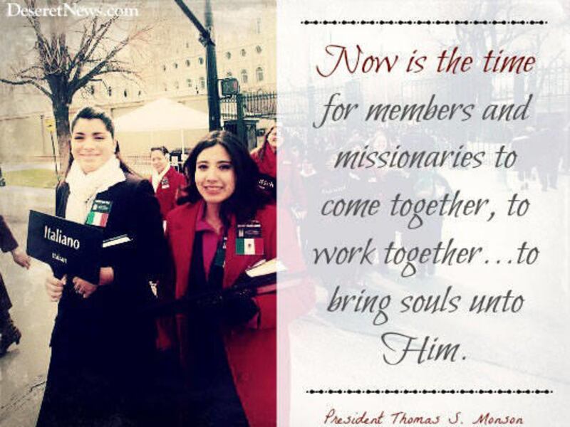 To their words I add my own. Now is the time for members and missionaries to come together, to work together, to labor in the Lord’s vineyard to bring souls unto Him. He has prepared the means for us to share the gospel in a multitude of ways, and He will assist us in our labors if we will act in faith to fulfill His work.