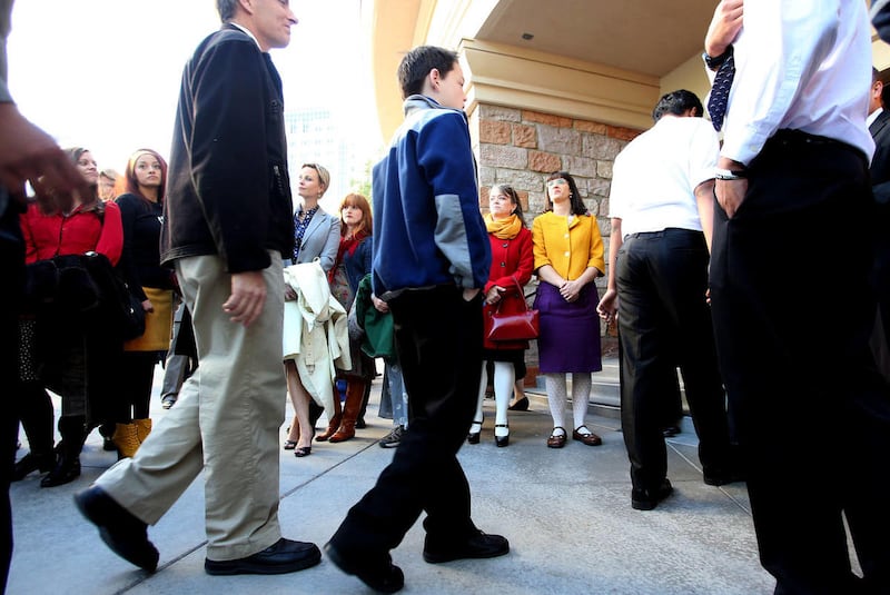 SALT LAKE CITY —About 150 women and their male supporters requested entrance for women to the all-male Priesthood Session of LDS General Conference Saturday but were turned away and invited to watch the proceedings on the Internet or other broadcast outlets.