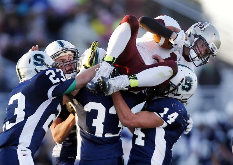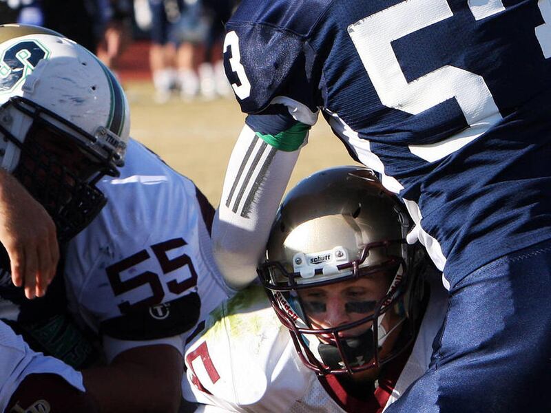 Chase Armstrong had two huge interceptions for the Lone Peak defense. He returned his first one 47 yards for a third-quarter touchdown that gave the Knights a 21-10 lead and turned it into a two-score deficit, while his second interception snuffed a Syracuse scoring threat deep in Lone Peak territory late in the third quarter.