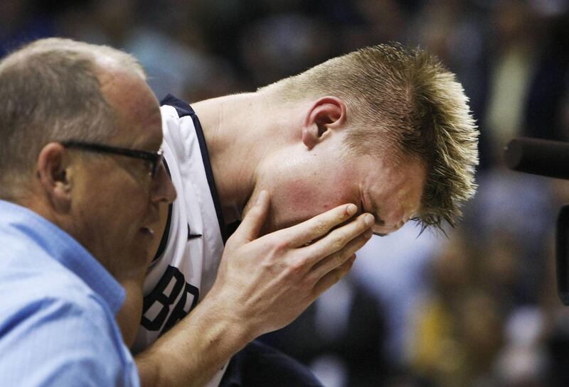 Officials ejected Kane (flagrant 2 personal foul) for the hit on Mika. It was a charging move by Kane to stop the Lone Peak All-American inside the paint with his hands extended to Mika’s face. Mika underwent tests late Wednesday night to determine if he had damage to his right eye orbit, retina or cornea.