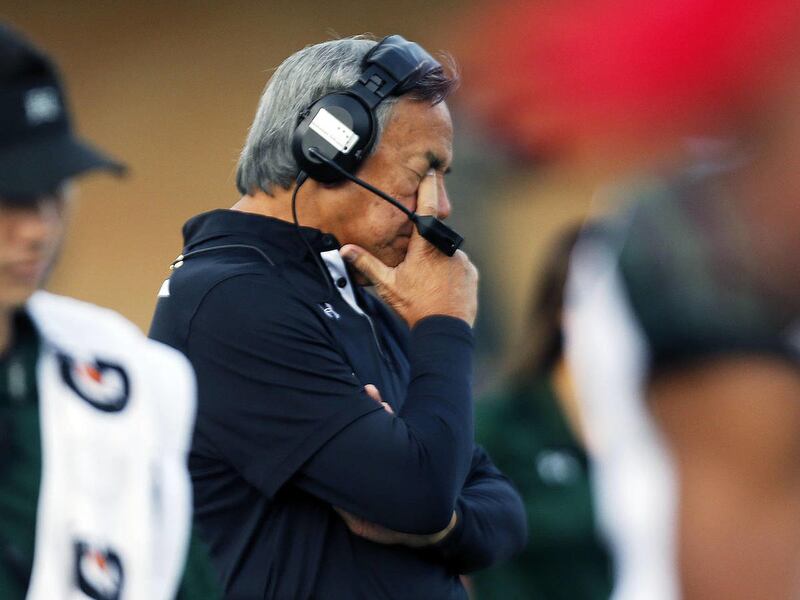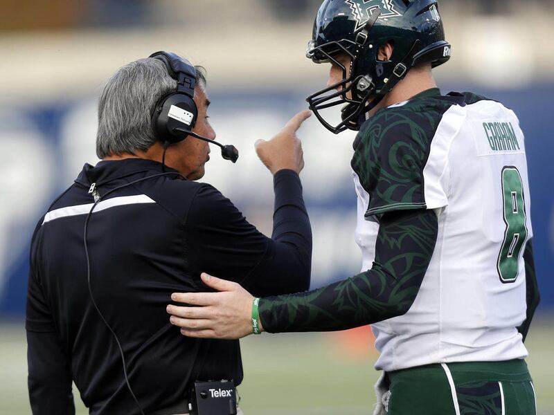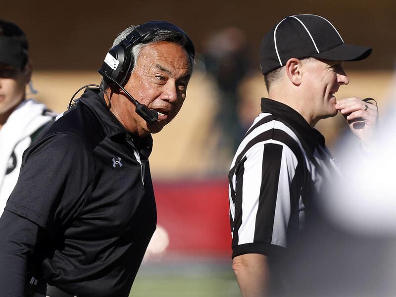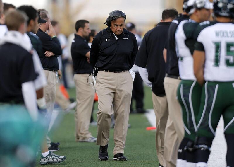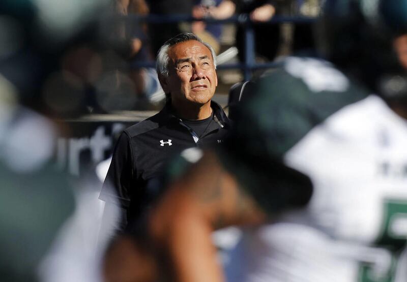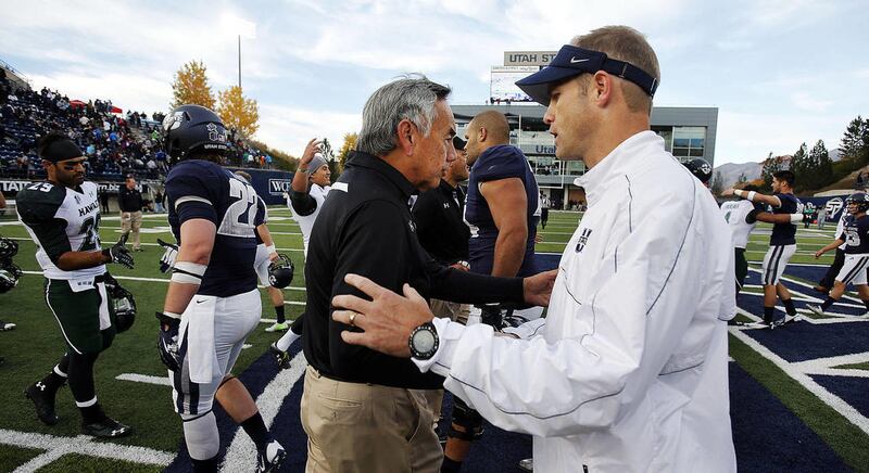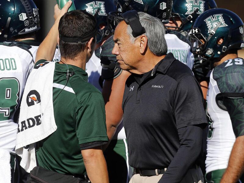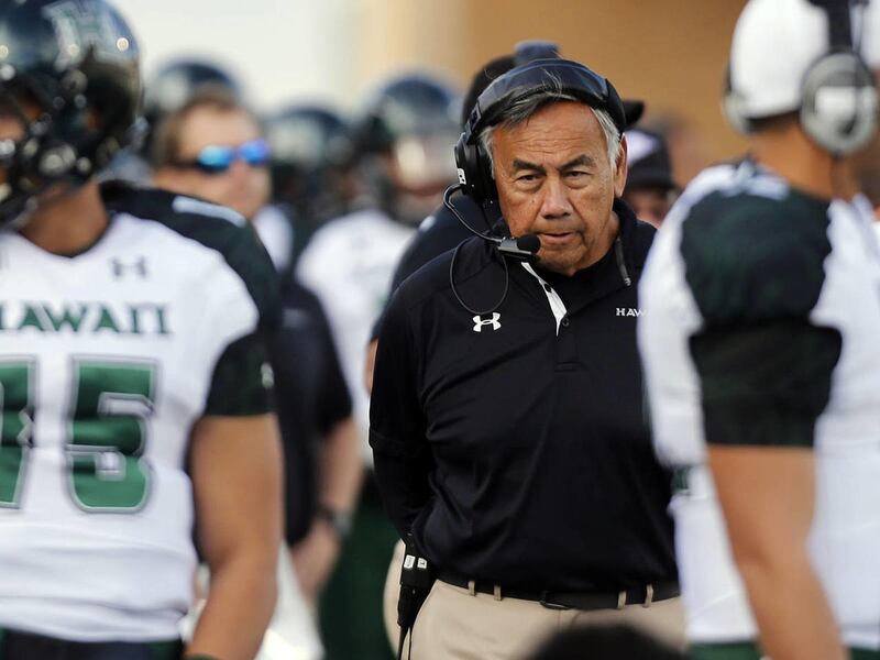 At 65 he got his first head coaching job, beginning in 2012. Since then, working in Hawaii has been anything but paradise. During last year’s 3-9 season, the Warriors lost eight straight, but improved with season-ending wins over UNLV and South Alabama. Yet this year hit him like a hard wave. The result was a string of losses stretching from Honolulu to Logan.