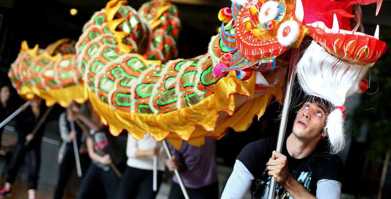 The new take on the Chinese dance involves a colorful, 36-foot-long dragon puppet, carried by seven dancers—men and women. Now the lead male dancer will be wearing Chinese warrior attire and dance with his sword, dazzling audiences with his acrobatics while battling the dragon.