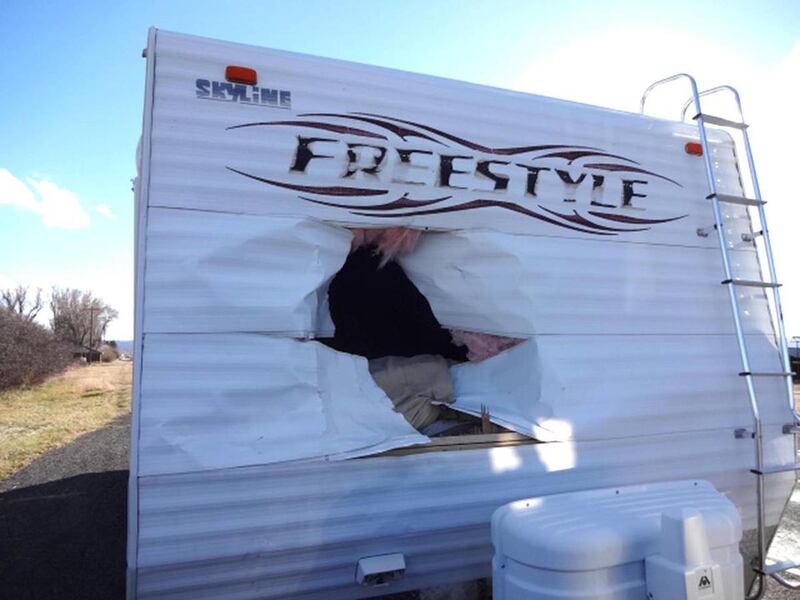 To me, it looks like someone pushed a 50-gallon drum through her trailer. – Utah Division of Wildlife Conservation officer Micah Evans