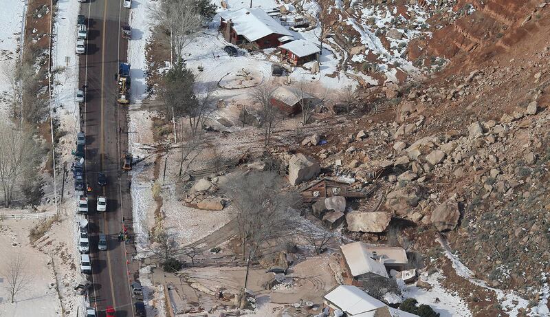 Members of the Utah Geological Survey were flown to the top of the mesa where the rocks came from to observe the ground. Based on what they found, two other homes remained evacuated Friday because there was a "very real threat of rocks coming down," McGuire said.