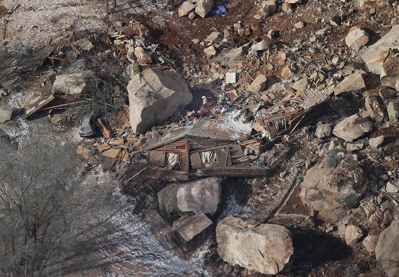 Elsey and Morris' two-story home sat at the base of the mountain. At least one of the rocks that smashed down on the home was larger than a semitrailer, McGuire said.