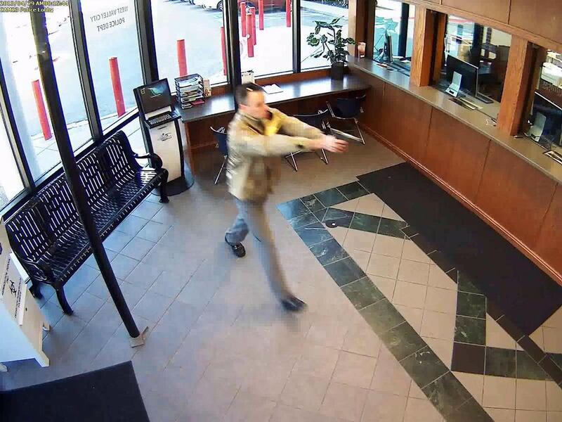 The man asked if he could speak to the officer in private and if he would come out from behind the protective glass. Just as the officer was about to step out into the main lobby, he asked Kammeyer to take his hands out his pockets so he could see them.