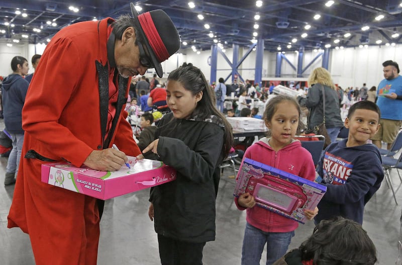 In Houston, Santa dons a red zoot suit and dances to jazz as he hands out gifts in Mexican-American neighborhoods.
