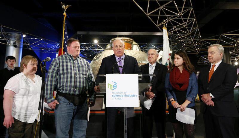 CHICAGO — Standing by a part of the Apollo 8 spacecraft he once rode, retired astronaut James Lovell on Monday read the 1968 Christmastime broadcast from the day he and two others became the first humans to orbit the moon.