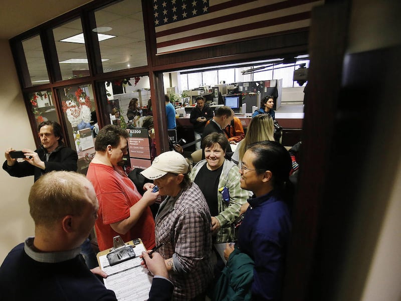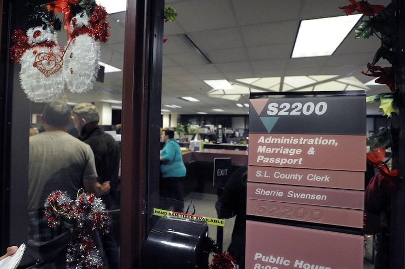Within hours, Salt Lake County District Attorney Sim Gill confirmed that, in light of the ruling, he saw no reason to prohibit Salt Lake County Clerk Sherrie Swensen from issuing marriage licenses to same-sex couples, and as many as 120 gay couples descended on the Salt Lake County Clerk's Office to obtain licenses, with many staying to marry on the spot.