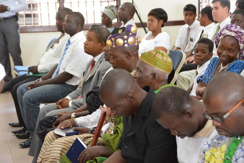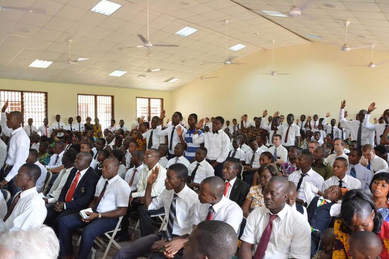 The stake center was filled to capacity as more than 800 members of the Church, missionaries, investigators, media and local tribal leaders listened to the new presidency address the congregation. President Edgeweblime and his counselors, Anani Kouegan and Boevi Edem Lawson, all expressed deep appreciation for the gospel in their lives and for the opportunity to help the work move forward.