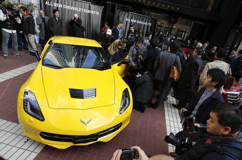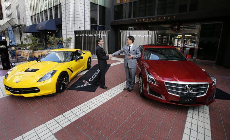 The automaker is trying to lure Japanese buyers with the new Cadillac CTS and Chevrolet Corvette, which it says boast better quality and mileage.