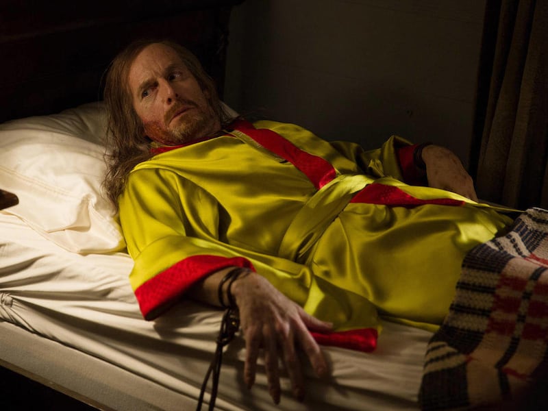 — A bar fight scene on NBC's "Revolution" in which a character wields a sword and a dagger to slash open one man's chest, cut another's neck and stab a third in the chest. The blood-spattered character pulls his sword from the last victim's body.