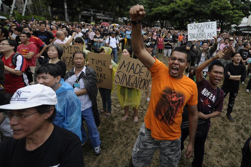 SINGAPORE — Nearly 3,000 people held a rare rally in Singapore on Saturday to protest a government plan to increase the city-state's population by admitting more foreigners, voicing concerns that it will worsen already strained public services and push up the cost of living.