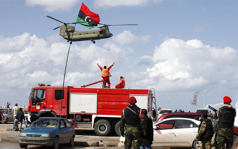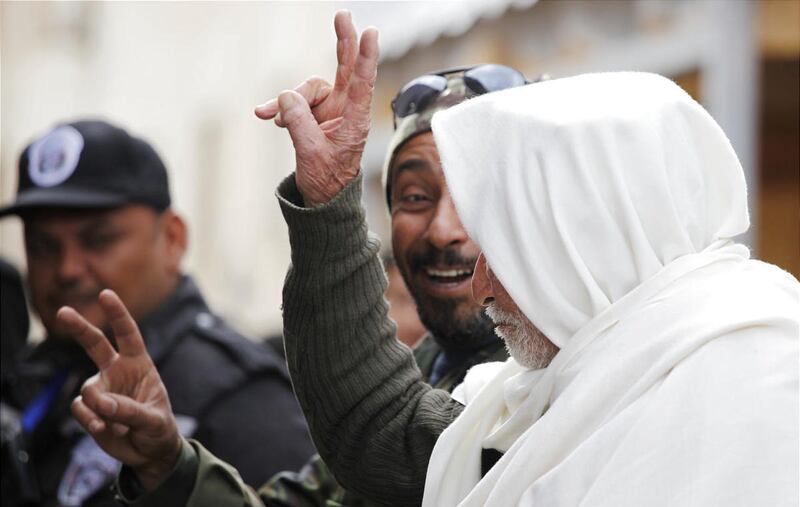 In Tripoli, tens of thousands thronged the main square in celebration. Security was deployed but the mood was relaxed, as people used fireworks, sent balloons in the sky and sprayed each other with perfume and incense. Overhead, jets circled in formation.