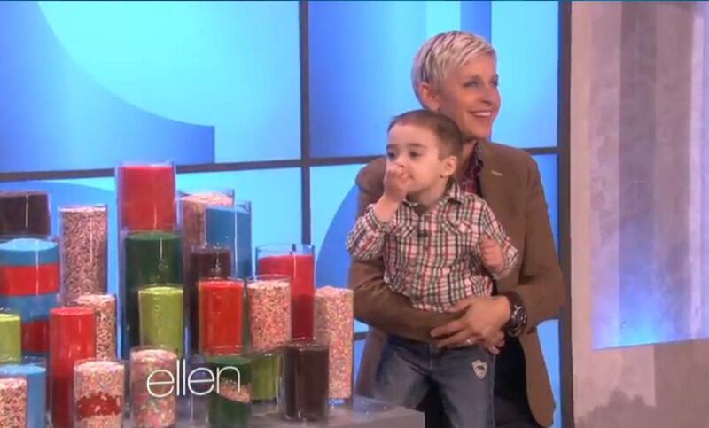 Both Erica and John received gifts from DeGeneres: Erica got a new video camera, and John got a T-shirt along with a table full of all the sprinkles he could eat.